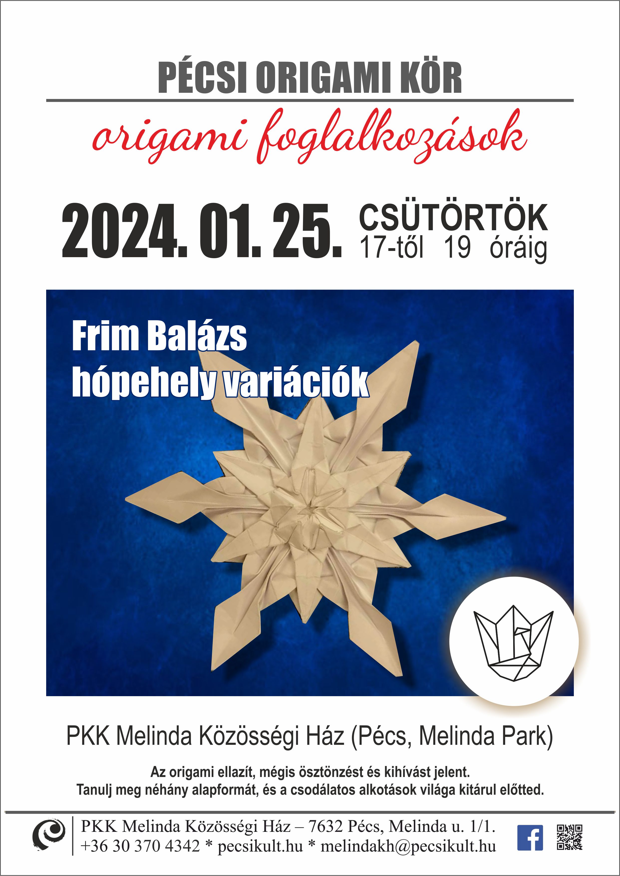 Origami foglalkozás - Pécs 2024.01.25. - Hópehely variációk |