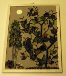 Nagyon szép képet készíthetünk ágakból, levelekből és termésekből. 26x37 cm-es karton papírra ragasztottam fel az ágakat, leveleket és terméseket a kép szerinti elrendezésben, sárga papírból holdat vágtam és ragasztottam rá. Végül 1,5 cm-es léckeretebe foglaltam.