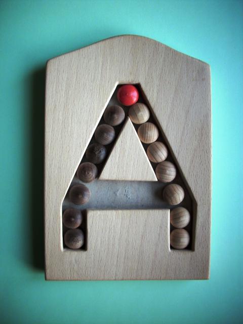 Az A betű vízszintes, üres részén három elem férjen el, és alulról a harmadik golyónál legyen. Lehet úgy is, hogy csak kettő férjen el ezen az 'átjárón', azzal nehezebbé válik a megoldás.