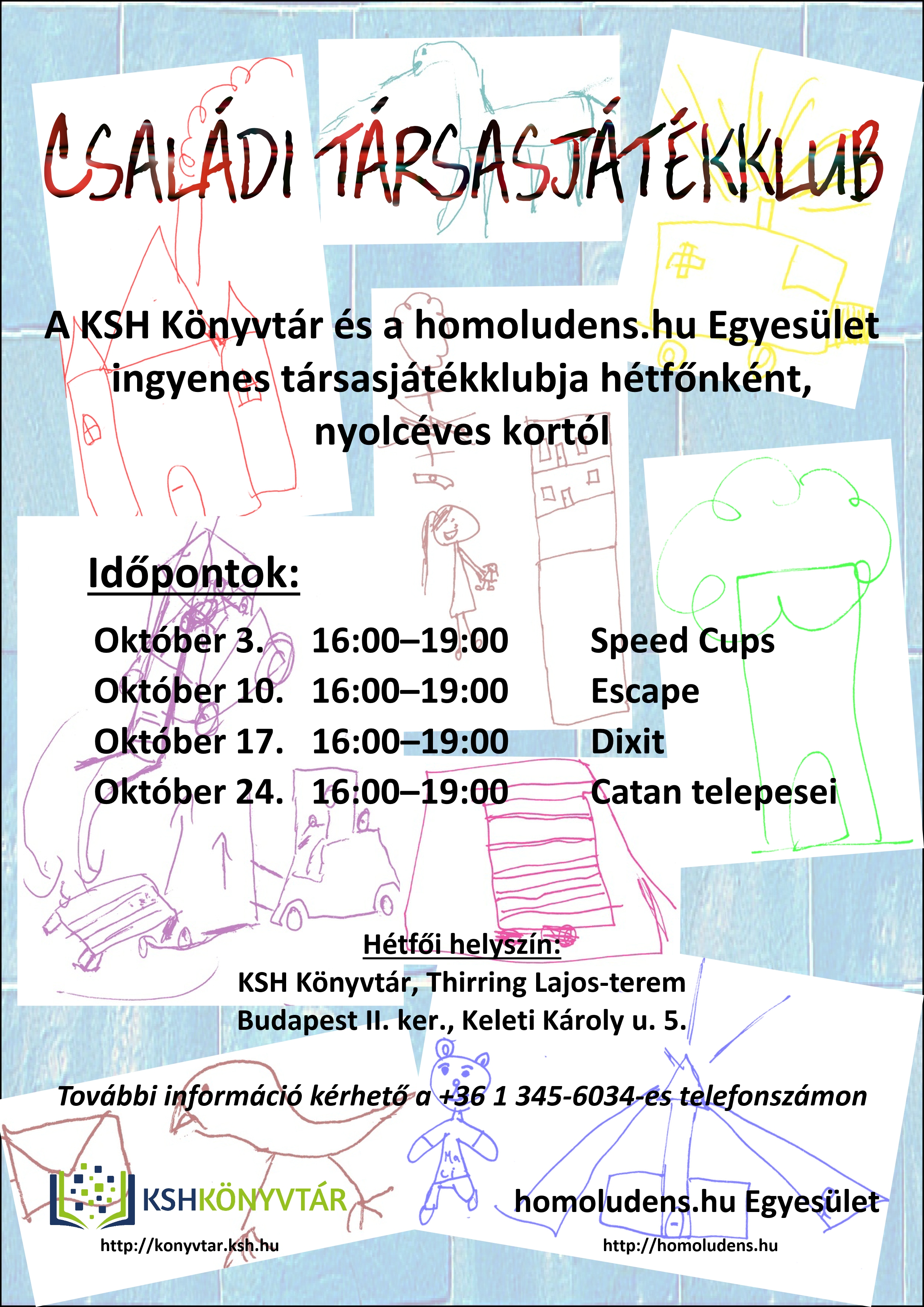 A homoludens.hu Egyesülettel együttműködve 2014 novemberében indította el a könyvtár a családi társasjátékklubot felnőttek és 8 évesnél idősebb gyerekek számára. A klub célja, hogy az érdeklődők baráti környezetben próbálhassanak ki új, egyszerűen elsajátítható társasjátékokat.