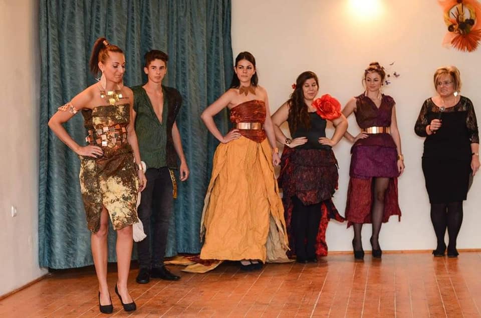 2015 november végén gyönyörű ifjú hölgyek és egy úr mutatta be a Horváth Ágnes óvónő tervei alapján papírgyűrés technikával készült ruhakölteményeket.