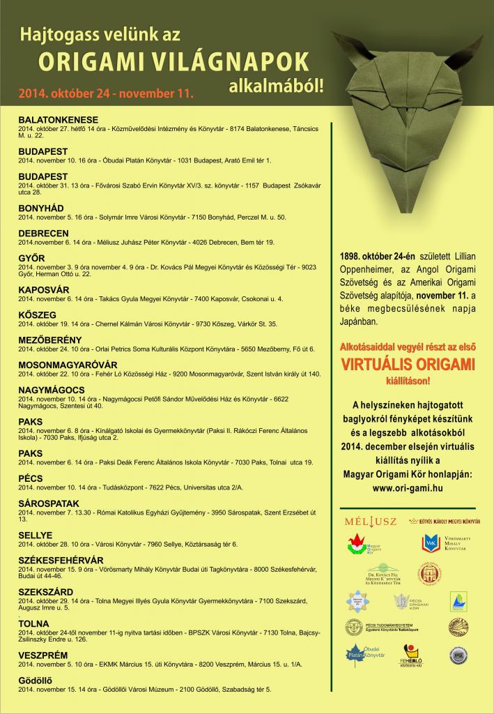 VESZPRÉM EKMK Március 15. úti Könyvtára 2014. november 5-én kb. 130 óvodás és iskolás hajtogatott a könyvtárban.