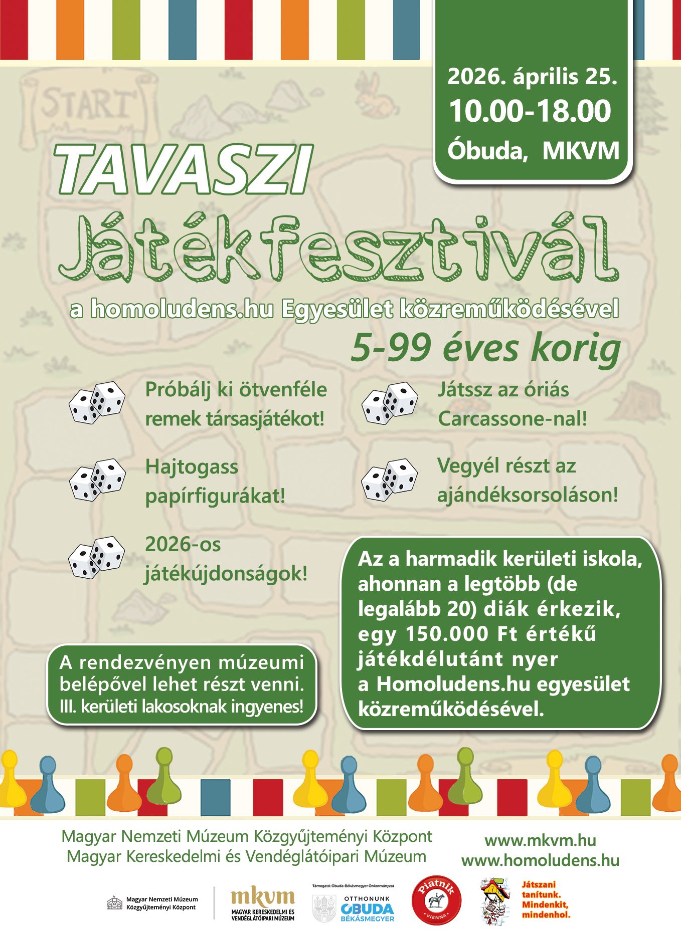Újra egész napos játékfesztivál kerül megrendezésre 2026. április 25-én, szombaton, 10 és 18 óra között a Magyar Kereskedelmi és Vendéglátóipari Múzeumban 5-99 éves játékosok számára.