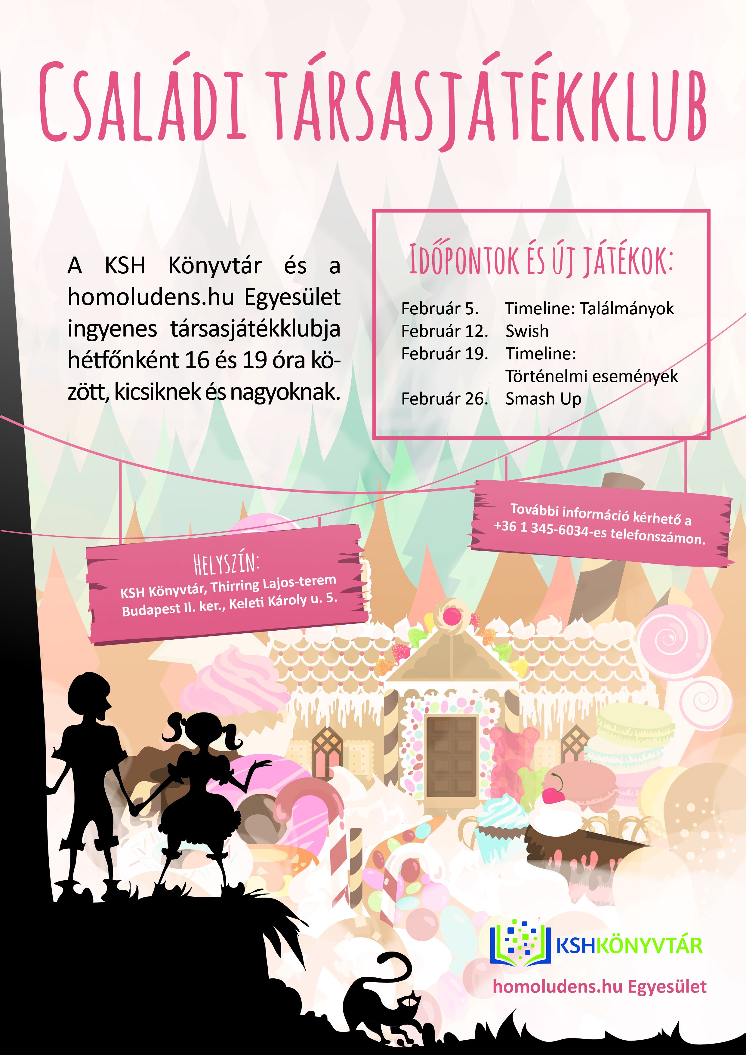 A homoludens.hu Egyesülettel együttműködve 2014 novemberében indította el a könyvtár a családi társasjátékklubot felnőttek és 8 évesnél idősebb gyerekek számára. A klub célja, hogy az érdeklődők baráti környezetben próbálhassanak ki új, egyszerűen elsajátítható társasjátékokat.