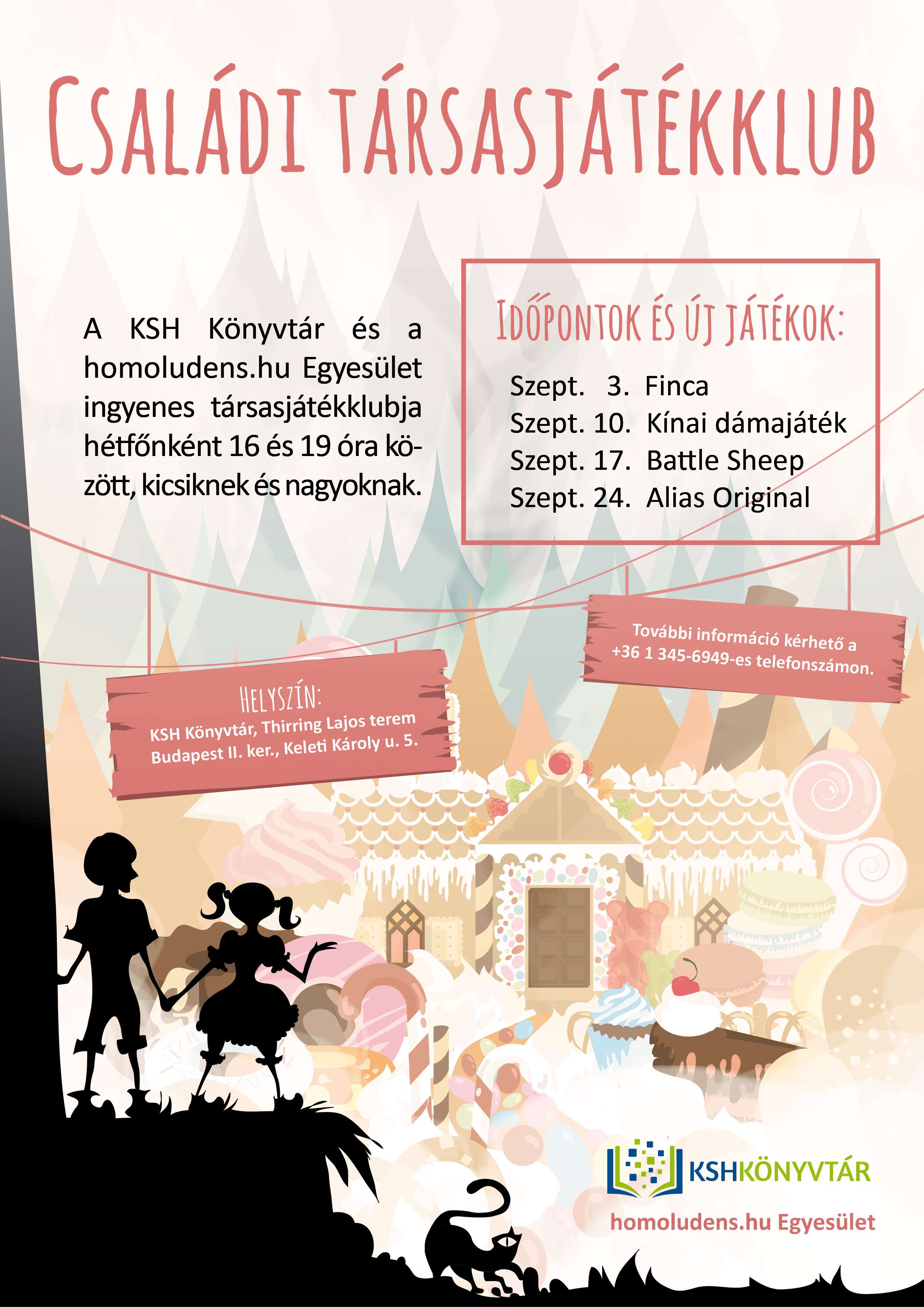 A homoludens.hu Egyesülettel együttműködve 2014 novemberében indította el a könyvtár a családi társasjátékklubot felnőttek és 8 évesnél idősebb gyerekek számára. A klub célja, hogy az érdeklődők baráti környezetben próbálhassanak ki új, egyszerűen elsajátítható társasjátékokat.