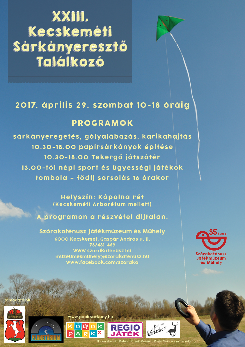 Idén szakítva a hagyományokkal a Kecskeméti Szórakaténusz Játékmúzeum és Műhely a Húsvét hétfői időponttal szakítva április 29-én tartja meg szokásosnak és hagyományőrzőnek mondható sárkányeresztését a kecskeméti Kápolna réten.